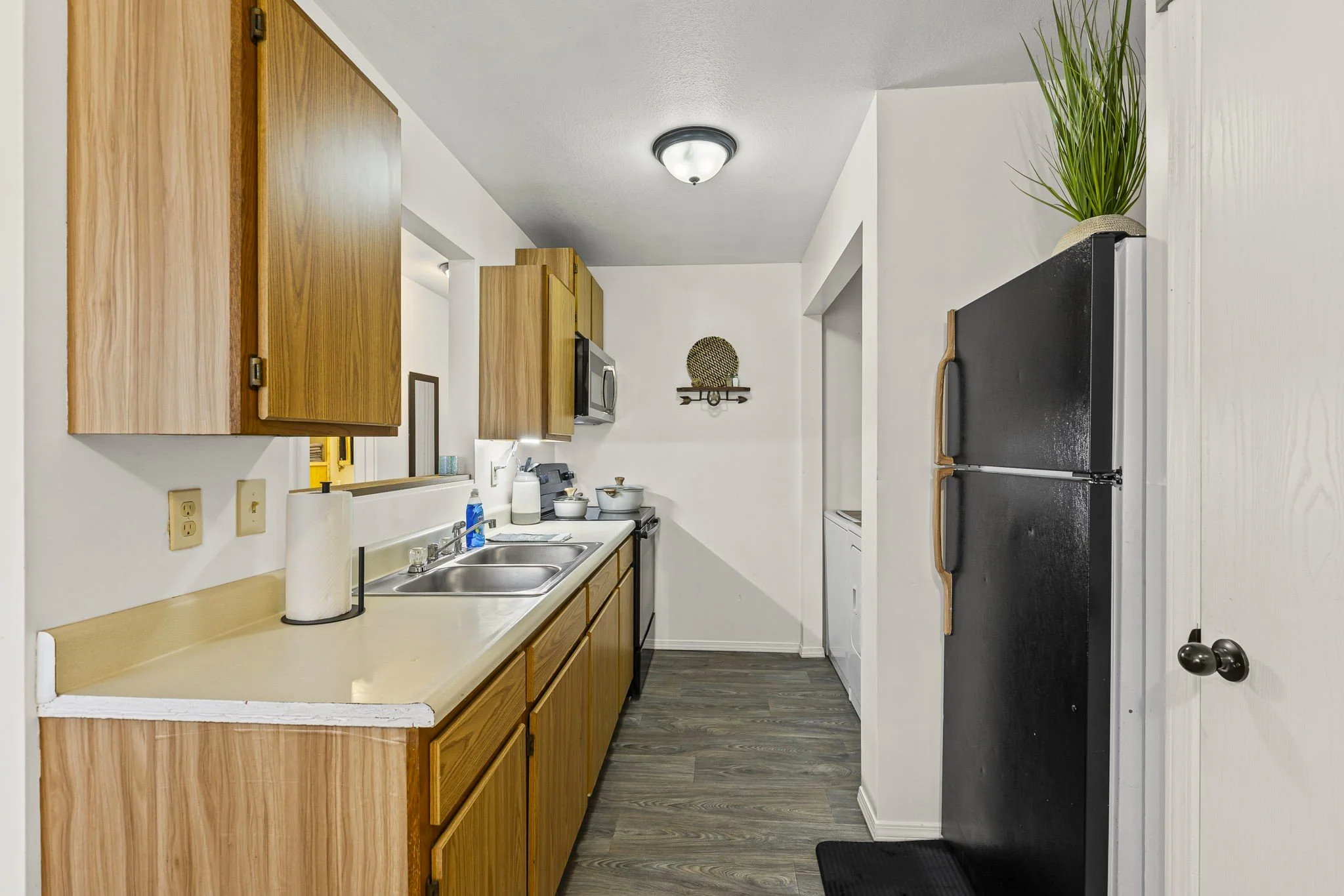 ALL FURNITURE, FURNISHINGS, WASHER/DRYER, and HOUSEHOLD ITEMS PROVIDED. Full kitchen with appliances/dishes.