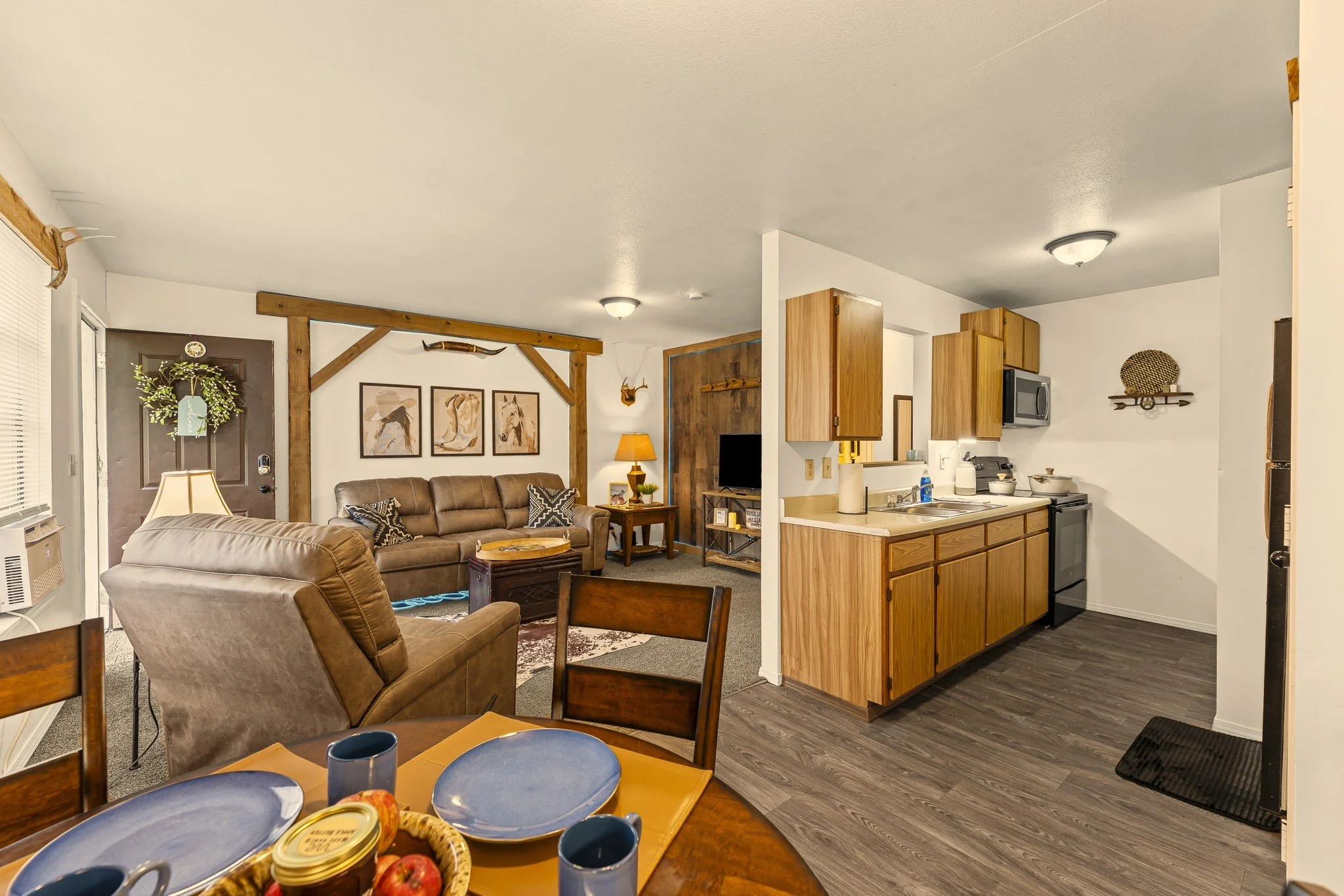The above unit is one of our furnished rentals and is shown for an example. It may not be the unit that is coming available.